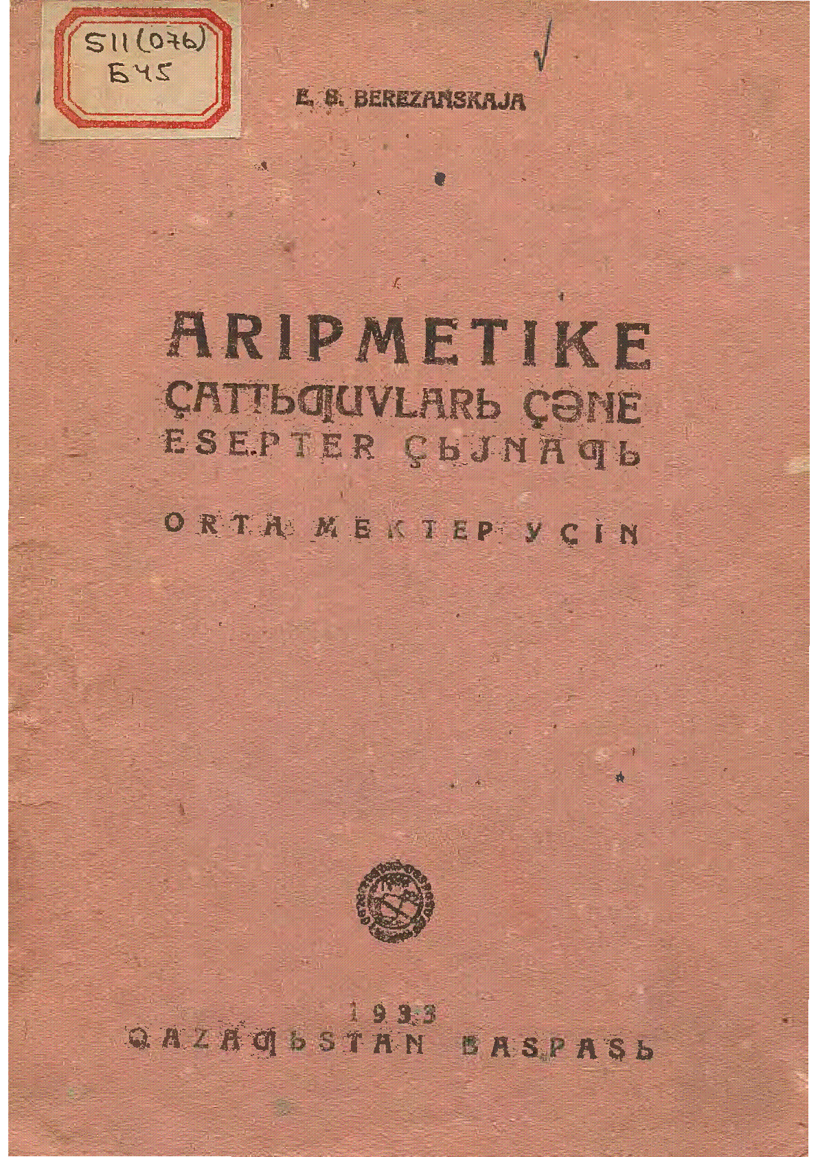 Арифметика жаттығулар және есептер жинағы [Мәтін] : орта мектеп үшін : бесінші оқу жылы / Е.С. Березанская ; ауд. А. Жаманов ; [жауапты ред. Кенесбаев]... – Қызыл-Орда : Қазақстан баспасы, 1933. - 129, [1] б. - Мәтін латын қарпімен қазақ тілінде . . – 20000 дана (мұқ.) : 40 тг.