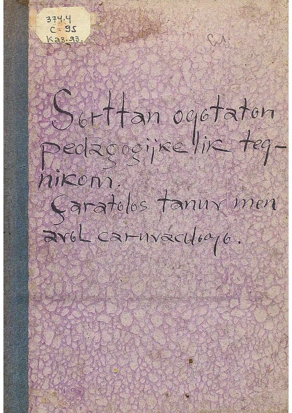 Сырттан оқытатын педагогикалық техникум [Text] / ... – Қызыл-Орда : Қазақстан баспасы, 1931. - 60 бет : 2-і жылдың дәрісі ; 1-кітап : Математика методикасы 1-сабақ; Жаратылыстану мен ауыл шаруашылығы 5-сабақ). - Латын графикасымен. . . – 3 000 дана