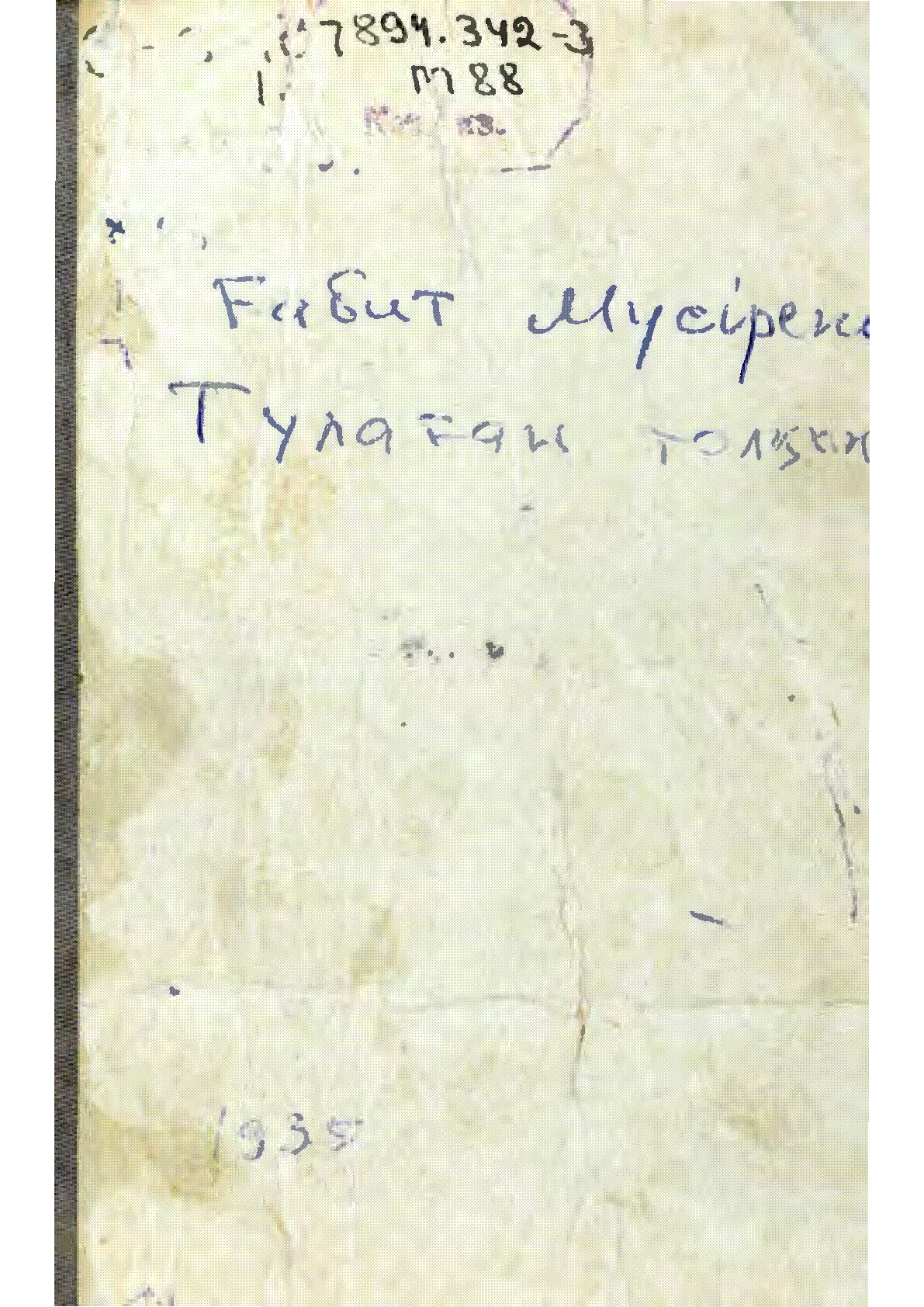Тулаған толқында [Text] : ұзақ әңгіме / Мүсірепұлы Ғабит . – 2-басылым .. – Алма-Ата : Қазақстан көркем әдебиет баспасы, 1935. - 94 бет - Латын графикасымен. . . – 5 150 дана