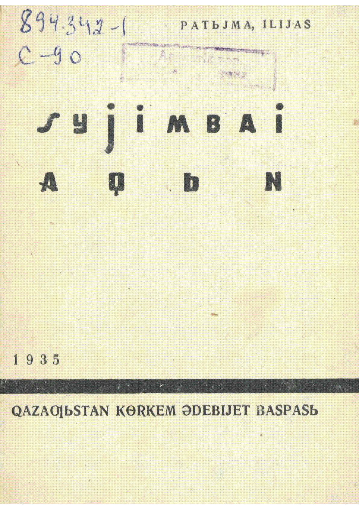 Сүйінбай ақын [Мәтін] / ; жин., басп. дайынд.: Ф. Ғабитова, І. Жансүгіров... – Қызыл-Орда : Қазақстан көркем әдебиет баспасы, 1935. - 85, [2] б. - Мәтін латын қарпімен қазақ тілінде . . – 5200 дана : 5 тг.