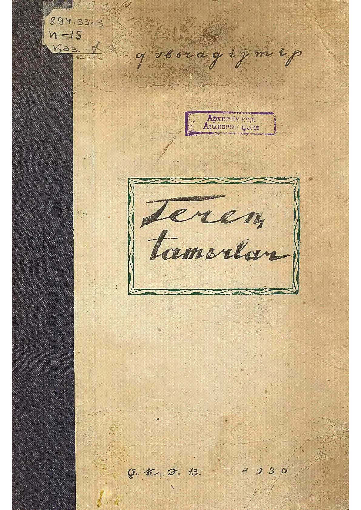 Терең тамырлар = Глубокие корни [Мәтін] : (тура сөз) ; роман / Ғ. Ибрагимов ; ауд. Б. Меңдіғазыұлы ; [жауап. ред. Ф. Ғабитова].., 4-басылымнан аударылды. – Алма-Ата : Қазақстан көркем әдебиет баспасы, 1936. - 185, [1] б. - Мәтін латын қарпімен қазақ тілінде . . – 5150 дана : 70 тг.