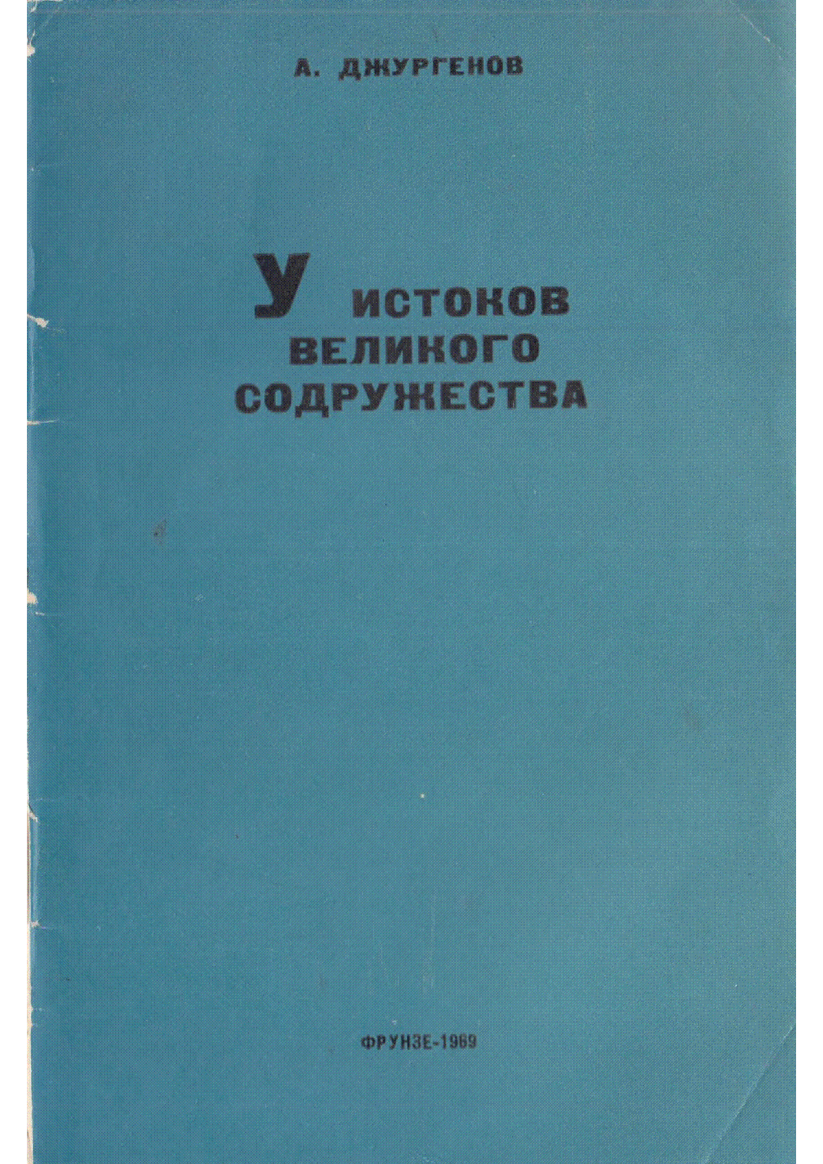 У истоков великого Содружества [Текст] : (Аулие-Атинский уезд в период Великого Октября и гражданской войны 1917-1920 гг.) / А. Джургенов ... – Фрунзе : Мектеп, 1969. - 87, [1] с. - Кеңес Нұрпейісұлының қоры. - Книга с автографом автора . – Библиография в сносках . – 1000 экз. : 10 тг.