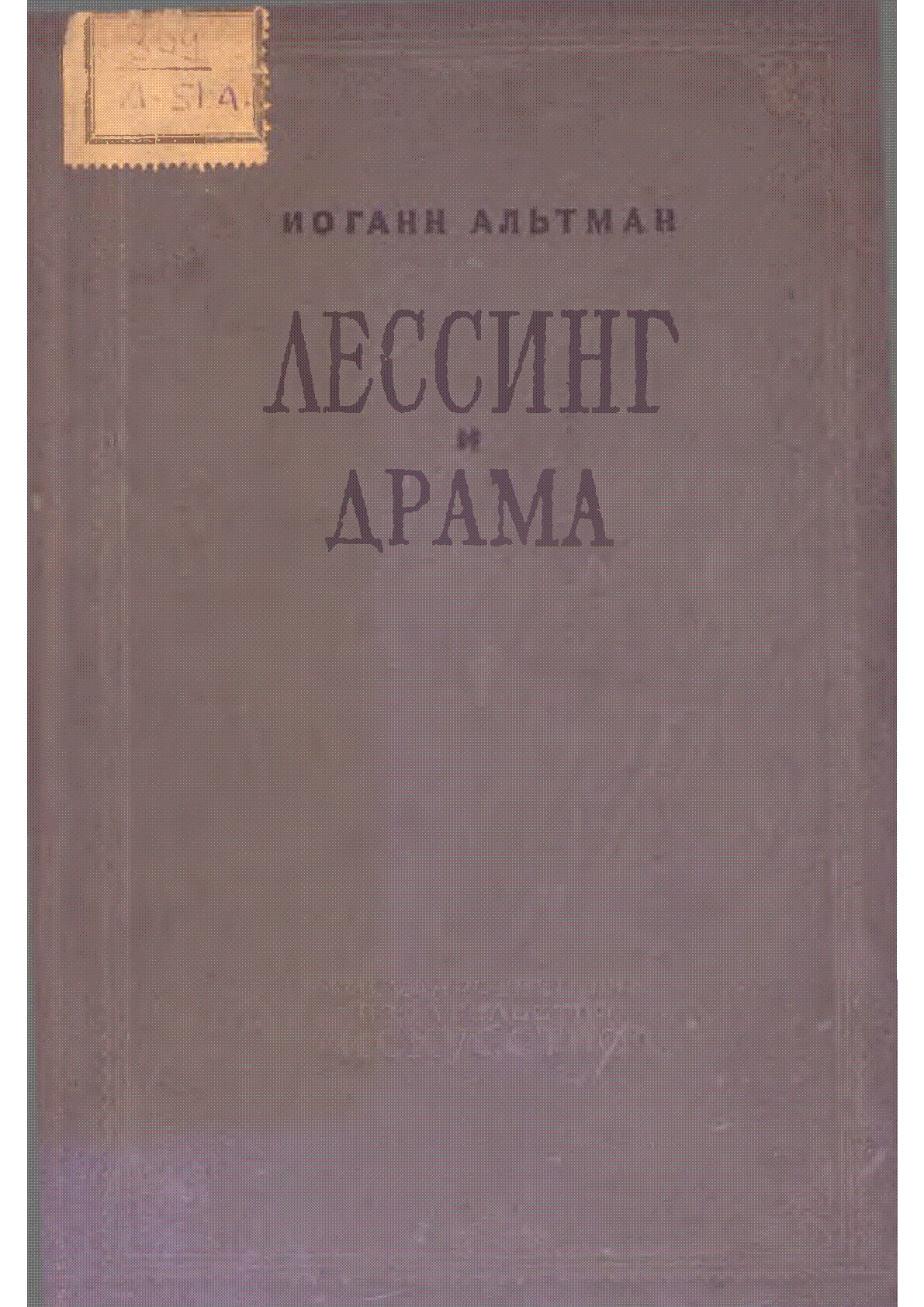 Лессинг и драма [Текст] / И. Альтман ... – Москва ; Ленинград : Искусство, 1939. - 184, [3] с., ил.; . – Библиогр. в подстроч. примеч. . – [б. т.] (в пер.) : 50 тг.