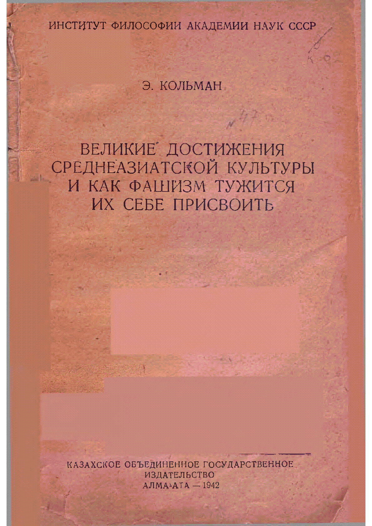 Великие достижения Среднеазиатской культуры и как фашизм тужится их себе присвоить [Текст] / Э. Кольман ; Ин-т фил. АН СССР... – Алматы : КазОГИЗ, 1942. - 72 с. . . – 10000 экз. : 20 тг.