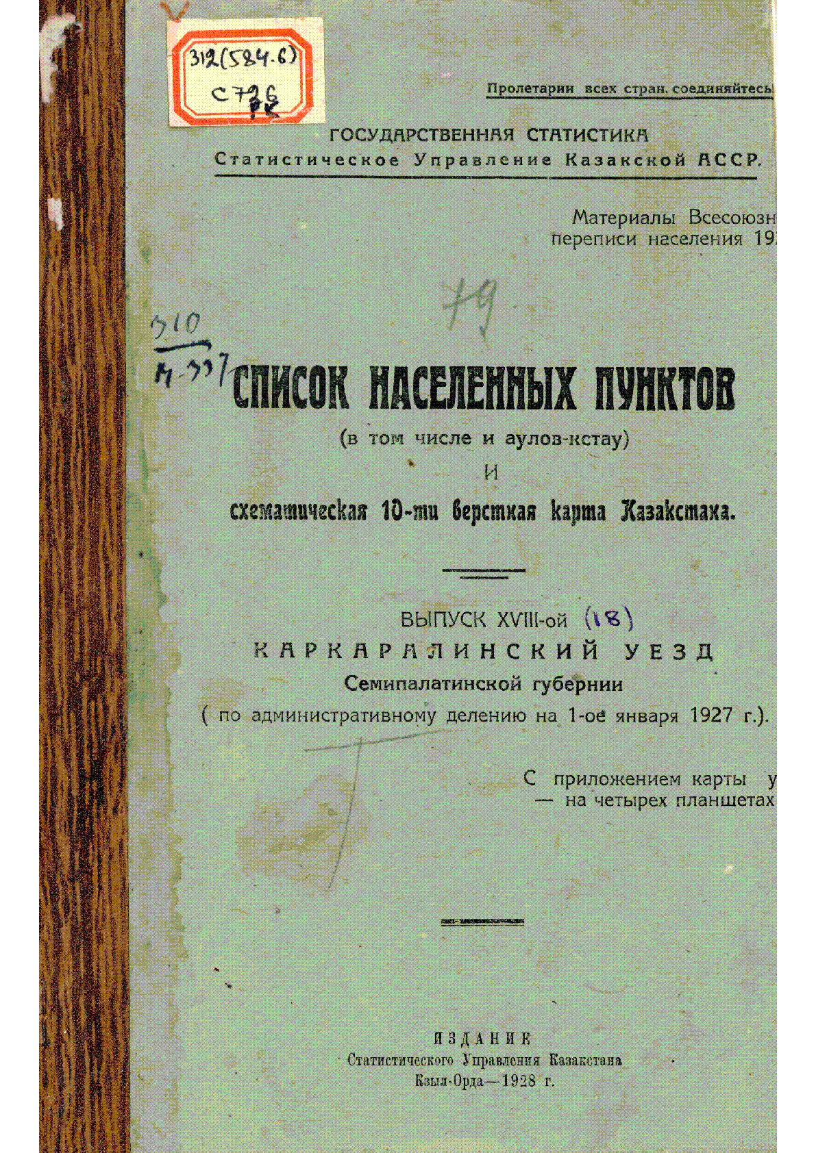 Список населенных пунктов (в том числе и аулов-кстау) и схематическая 10-ти верстная карта Казакстана [Текст] : (по административному делению на 1-ое января 1927г.)- Кызыл-Орда : Издание Статистического Управления Казакстана , 1928.– 550 экз. . – 113 с.