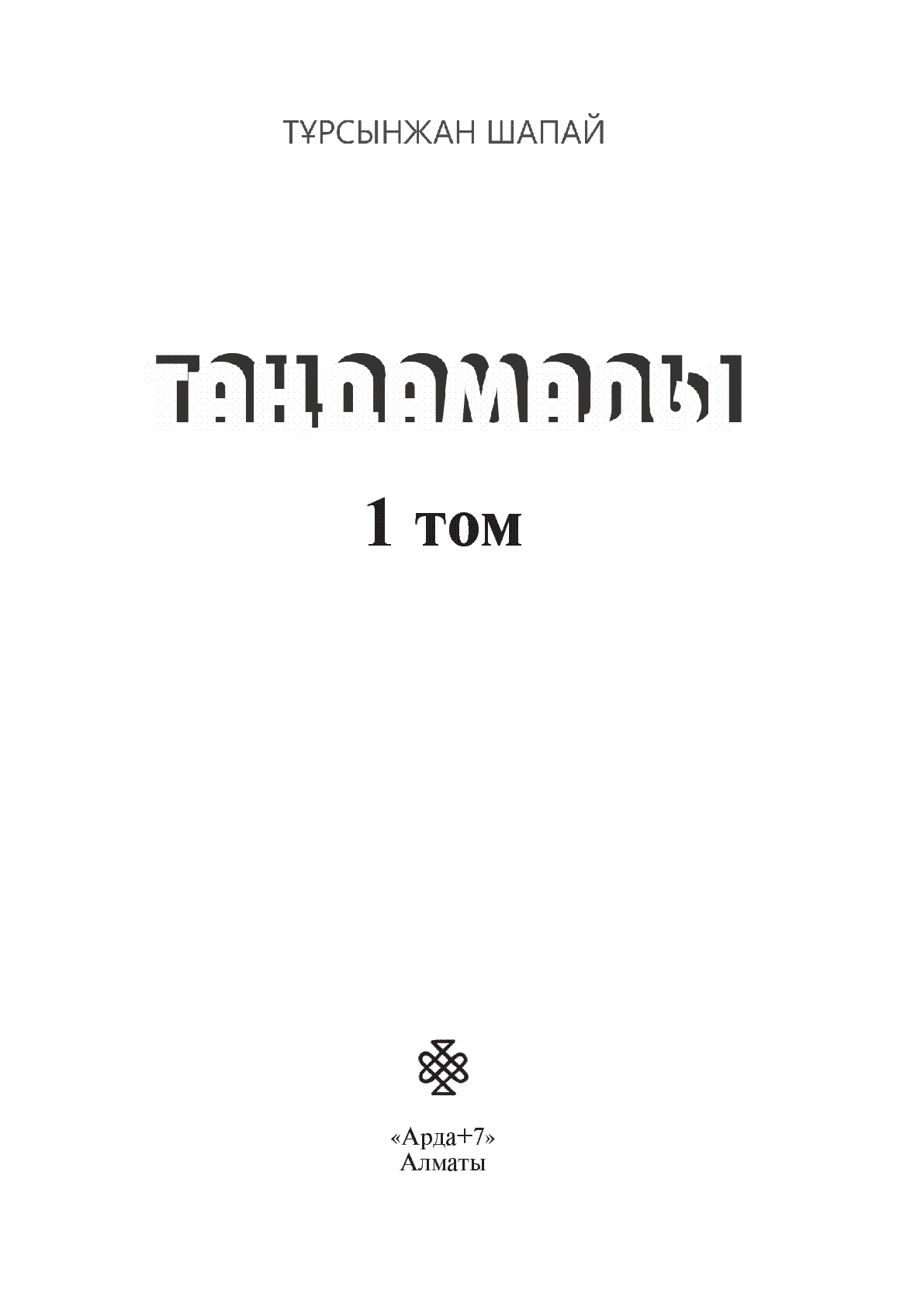 Таңдамалы [Мәтін] / Т. Шапай- Алматы : [б. ж.] , 2017.– 5000 дана . – 978-601-7355-62-3 (мұқ.)(1-т.) - "Әдеб. әлеум. маңызды түрл. сатып алу, басып шығару және тарату" кіші бағдарл. бойынша жарық көрді . 1-том . Эссе. Әдеби сын. Зерттеу– 423 б. (мұқ.)(1-т.) : 1178 тг.