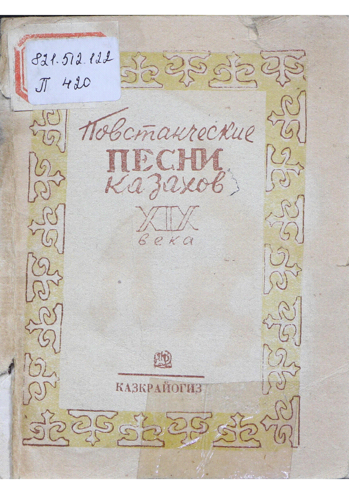 Повстанческие песни казахов XIX века [Текст] / ; пер. с каз. А. Никольской... – Алма-Ата : Казахстанское краевое изд-во, 1936. - 86, [2] с. . . – 3200 экз. : 20 тг.