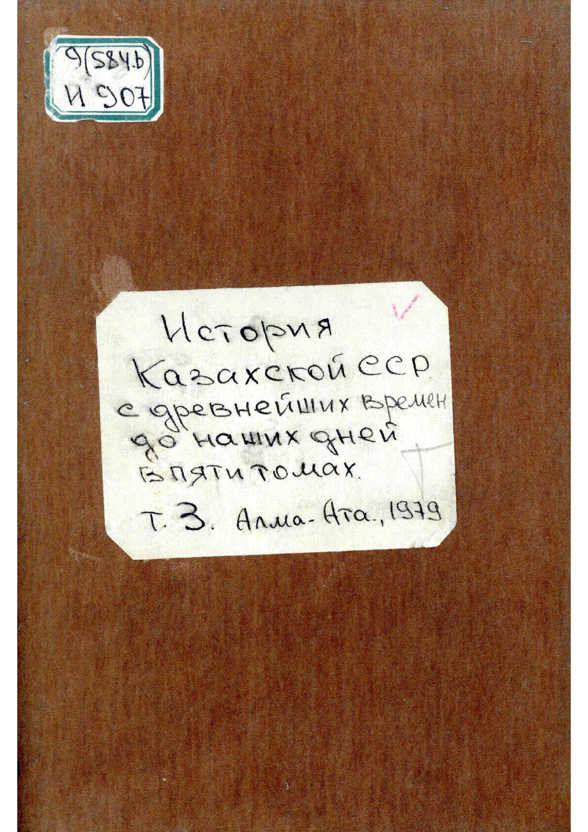 [Текст] , История Казахской ССР [Текст] : в пяти томах ; АН КазССР. Ред. колл.: С.Б. Баишев, Г.М. Мусрепов, А.Н. Нусупбеков и др.- Алма-Ата : Изд-во "Наука" КазССР , 1979.– 15000 экз. . т. 3 ., – 544 с., С карт. и илл. . : 2р. 60к.