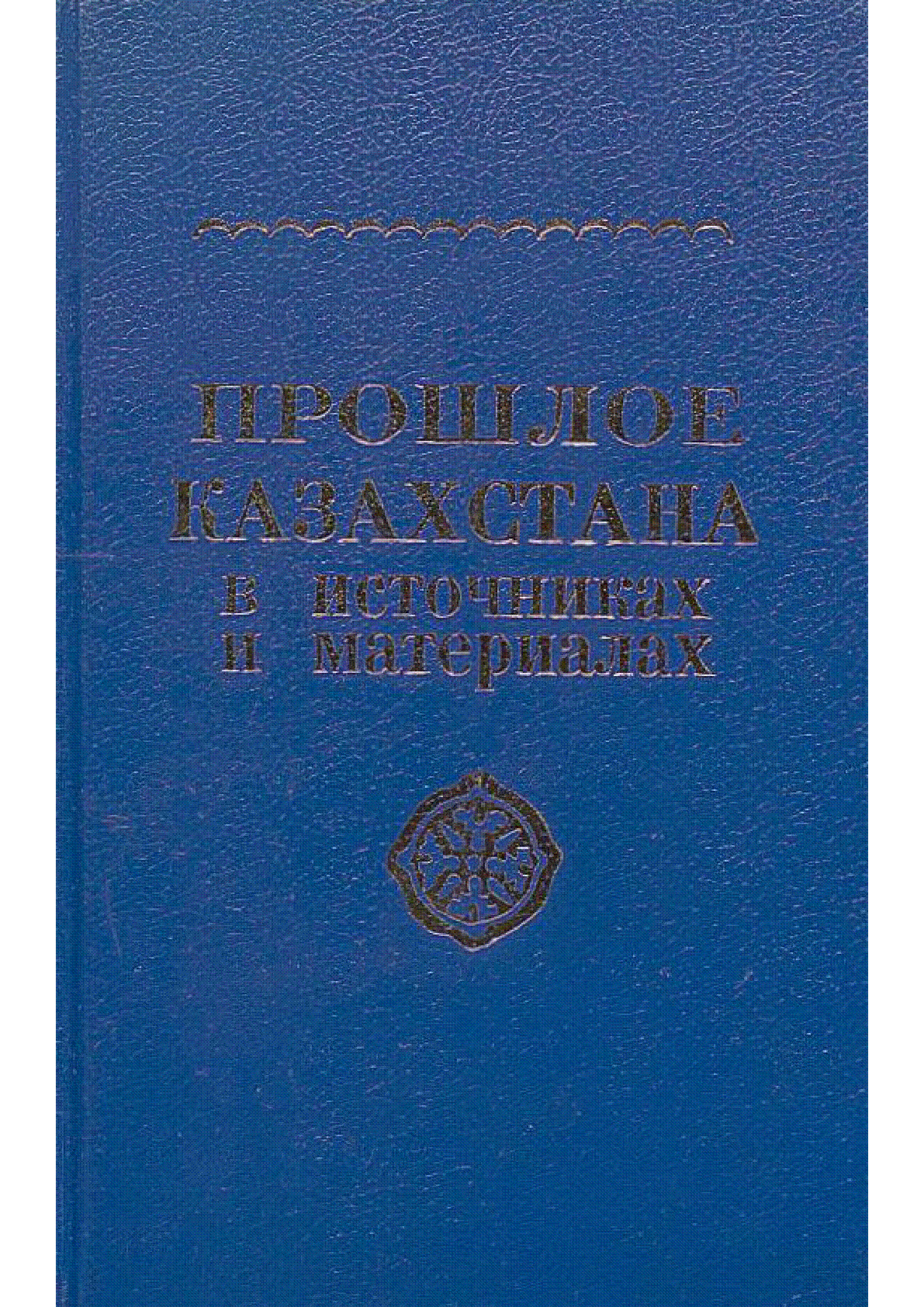 Прошлое Казахстана в источниках и материалах (V в. до н.э.- XVIII в.н.э.). [Текст] ; Государственная публичная библиотека Казахстана ; Казахский научно-исследовательский институт национальной культуры ; под редакцией: С. Д. Асфендиярова, П. А. Кунте . – 2-е издание ,- Алма-Ата [Алматы] : Қазақстан , 1997.– 5000 экз. . – ISBN 5-615-01911-5 (в пер.) - Эта книга, выпущенная в 1935 году Казахским краевым издательством, предшественником нынешнего республиканского издательства "Қазақстан", тиражом 3000 экземпляров, ставшая библиографической редкостью, печатается без изменений . Указатель географических наименований: с. 329-352, указатель личных имен: с. 353-365, указатель предметов: с. 366-371. - Литература по истории казаков и Казахстана: с. 371-381 Сборник I . (V в. до н. э. - XVIII в. н. э.)– 380, [2] с., табл. . (в пер.) : 350 тг.