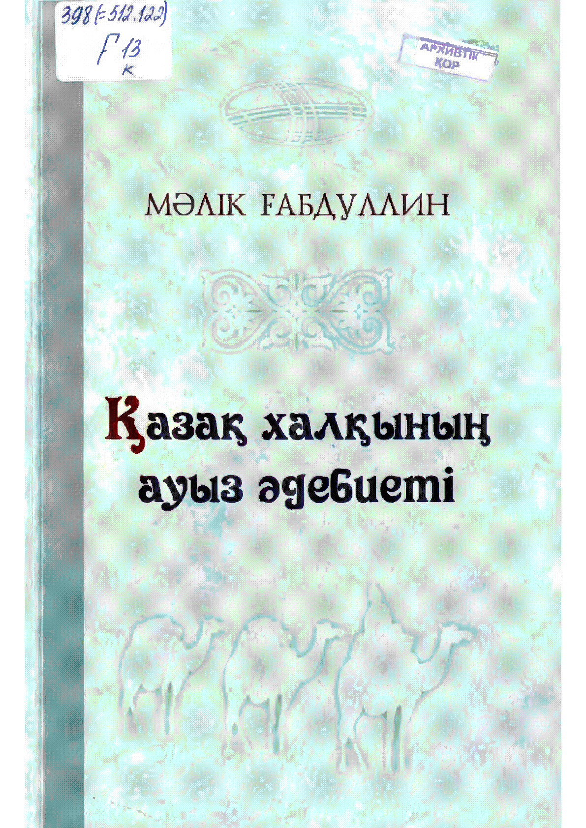 Қазақ халқының ауыз әдебиеті [Мәтін] : оқу құрал / Ғабдуллин Мәлік ... – Астана : Рауан, 2013. - 456 бет 20 см . . – 2000 дана – 978-601-253-104-6 : 1137 теңге