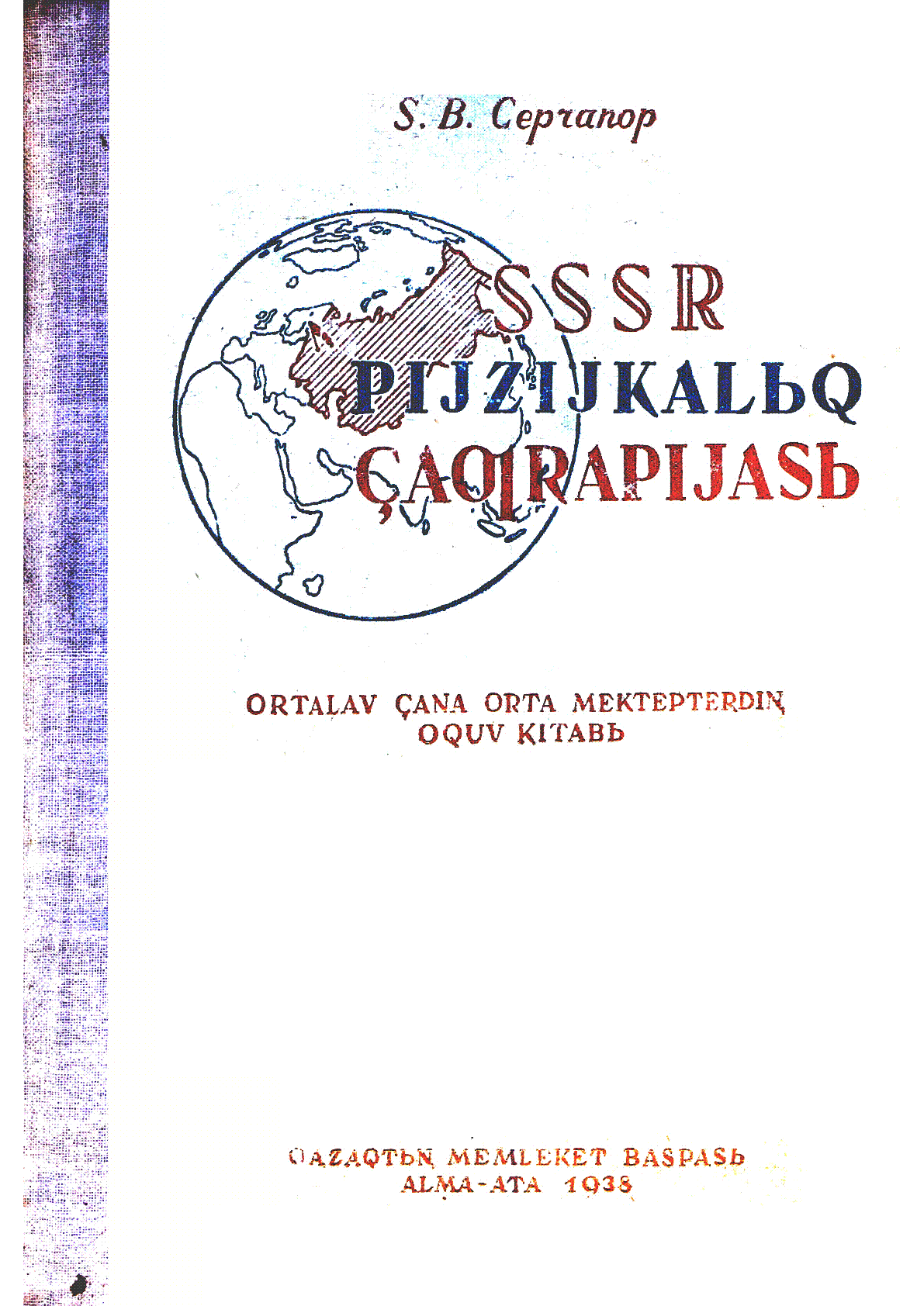 СССР физикалық географиясы [Мәтін] : орталау және орта мектептердің 7-кластарына арналған оқу кітабы / С. В. Чефранов ; [жауапты ред. С. Үкенов] .- Алма-Ата : Қазақтың мемлекет баспасы , 1938.– 20150 дана . (мұқ.) - Мәтін латын қарпімен қазақ тілінде . 2-бөлім .– 173, [2] б., суретті . (мұқ.) : 30 тг.