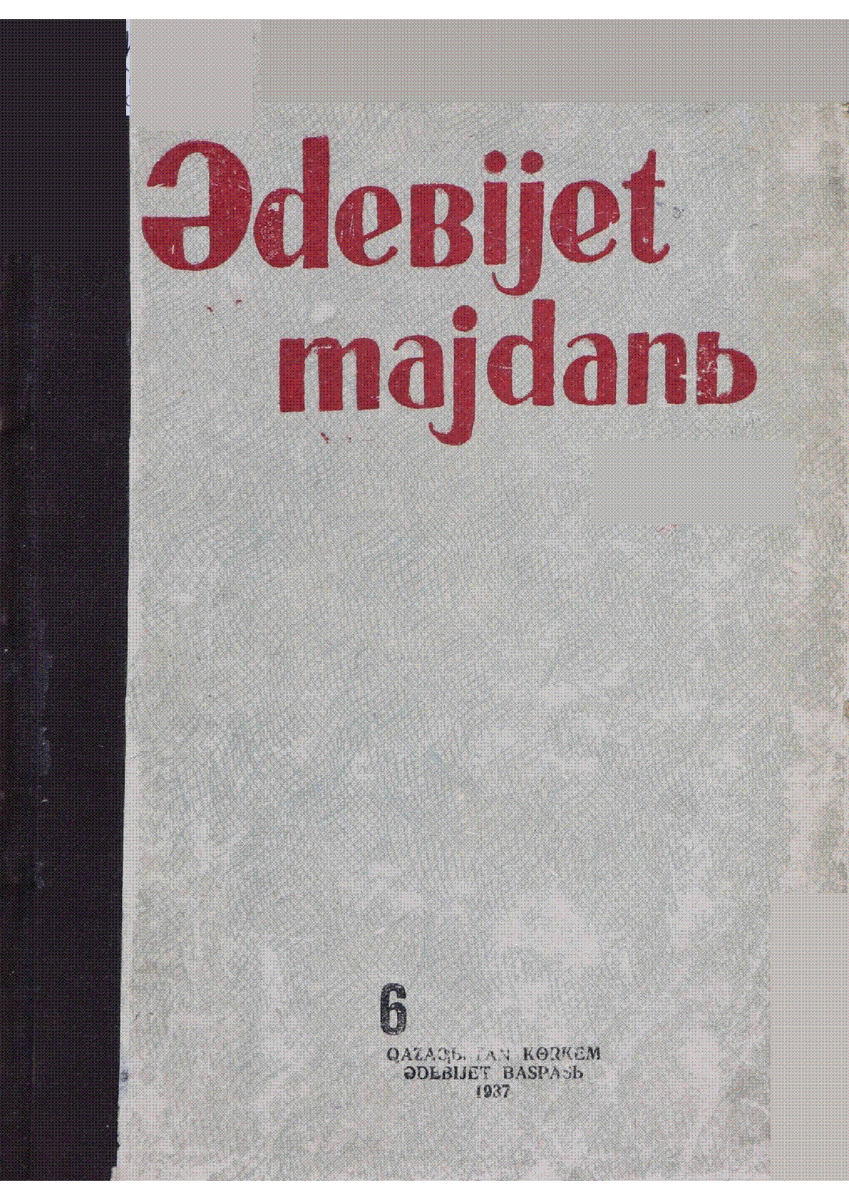Әдебиет майданы [Мәтін] : Қазақстан совет жазушылар ұйымының айына бір рет шығатын көркем әдебиет және сын журналы / . – Алма-Ата : Қазақстан көркем әдебиет баспасы, 1937. - .– [т. ж.].– Айына бір рет шығады. № 6. - [т. ж.]