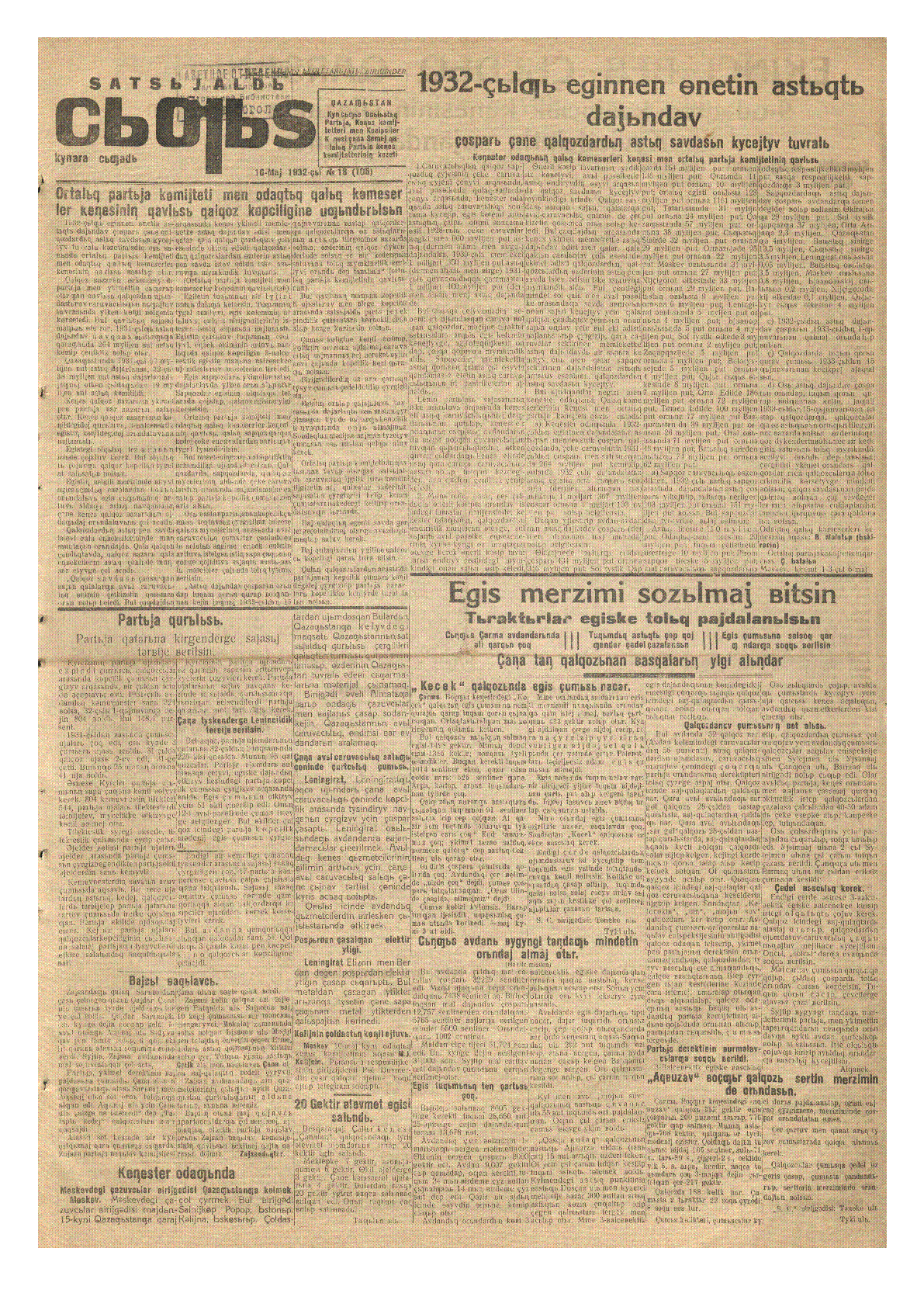 Социалды шығыс 1932, 16 май = Satsьjaldь сьgьs [Мәтін] ; ред. М. Нургалиев. – Семипалатинск : Тип. "Прииртышской Правды", 1932. - – Күнара шығады, (Құжатты көшіріп алып оқуыңызды сұраймыз). 1932. - № 18 (105). - 16 май.