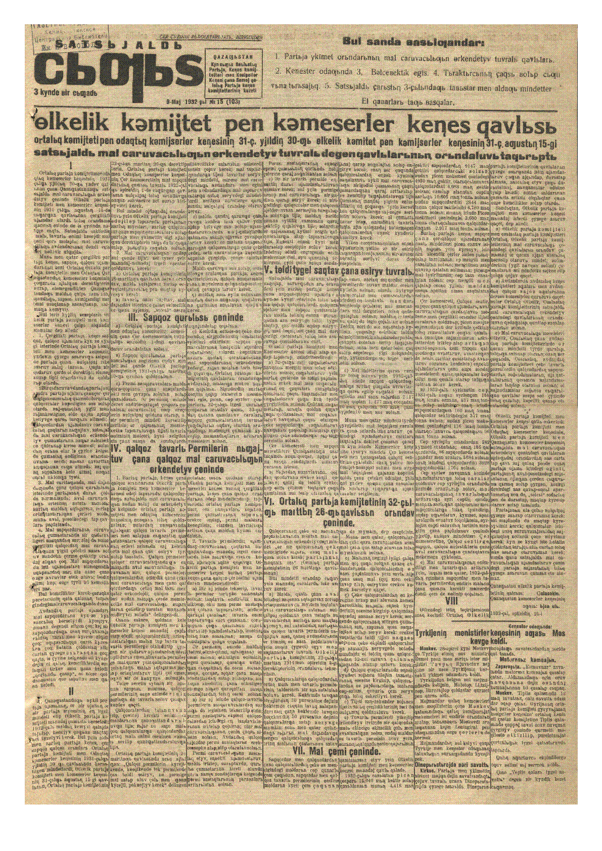 Социалды шығыс 1932, 9 май = Satsьjaldь сьgьs [Мәтін] ; ред. М. Нургалиев. – Семипалатинск : Тип. "Прииртышской Правды", 1932. - – Күнара шығады, (Құжатты көшіріп алып оқуыңызды сұраймыз). 1932. - № 15 (103). - 9 май.