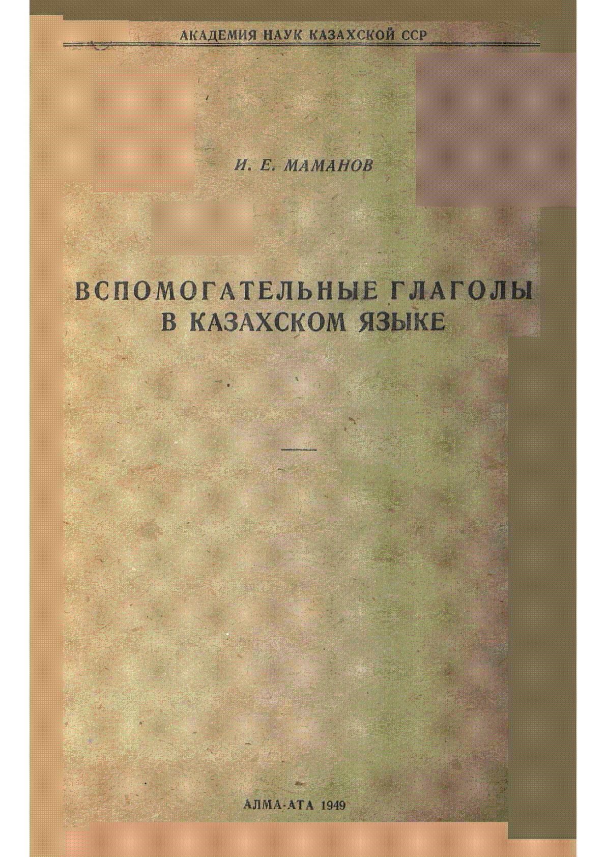 Вспомогательные глаголы в казахском языке [Текст] / И. Е. Маманов ; Акад. наук Казахской ССР ; [отв. ред. Н. Т. Сауранбаев]... – Алма-Ата : Изд-во АН КазССР, 1949. - 97 с. - Шора Сарыбаев қоры . – Библиогр.: с. 94-95 . – 1000 экз. : 5 тг.