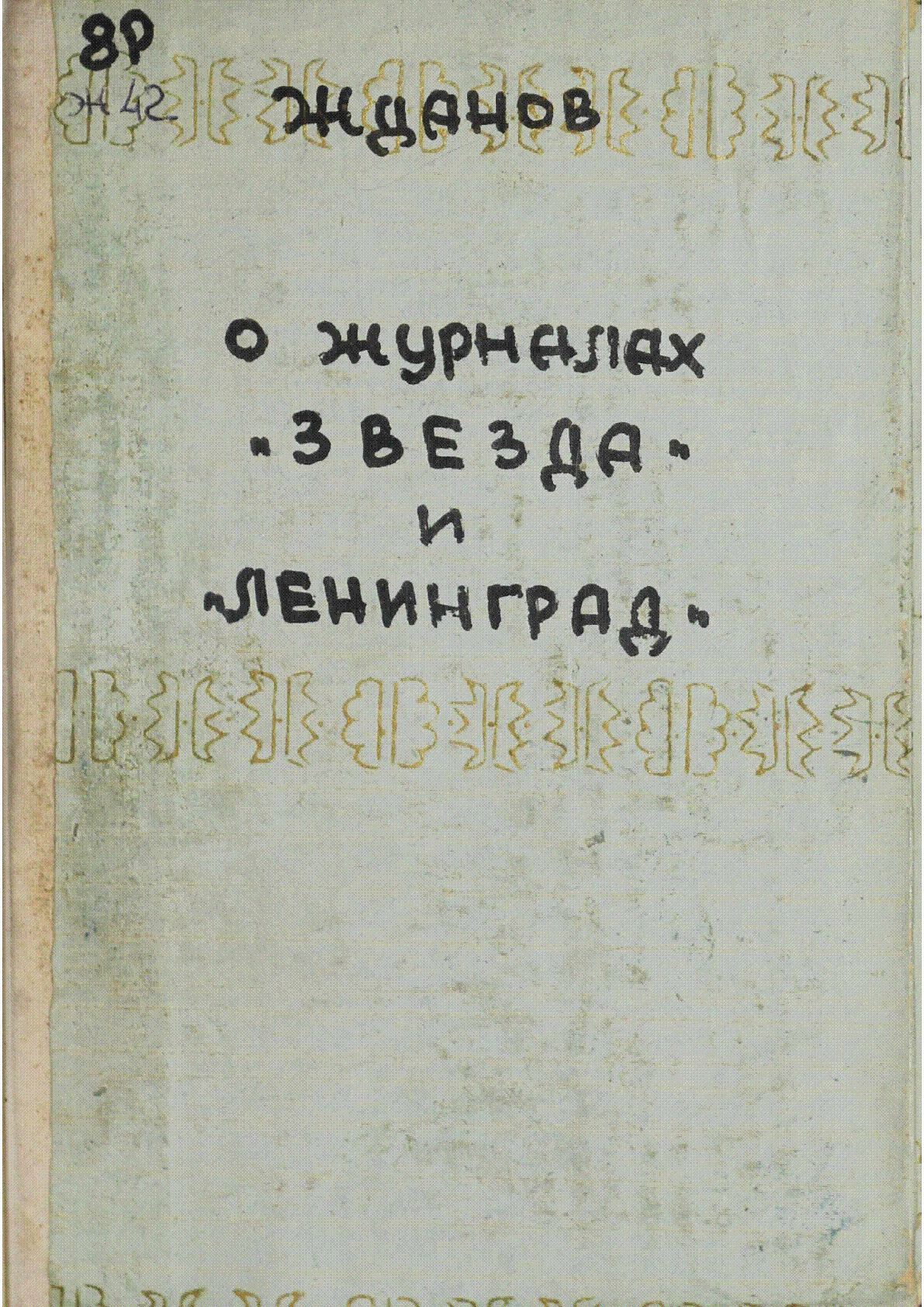 О журналах "Звезда" и "Ленинград" [Текст] : Сокращенная и обобщенная стенограмма докладов на собрании партийного актива и на собрании писателей в Ленинграде / А. А. Жданов ... – Алма-Ата : Казахское объединенное государственное издательство, 1946. - 31, [1] с. . . – 20000 экз.