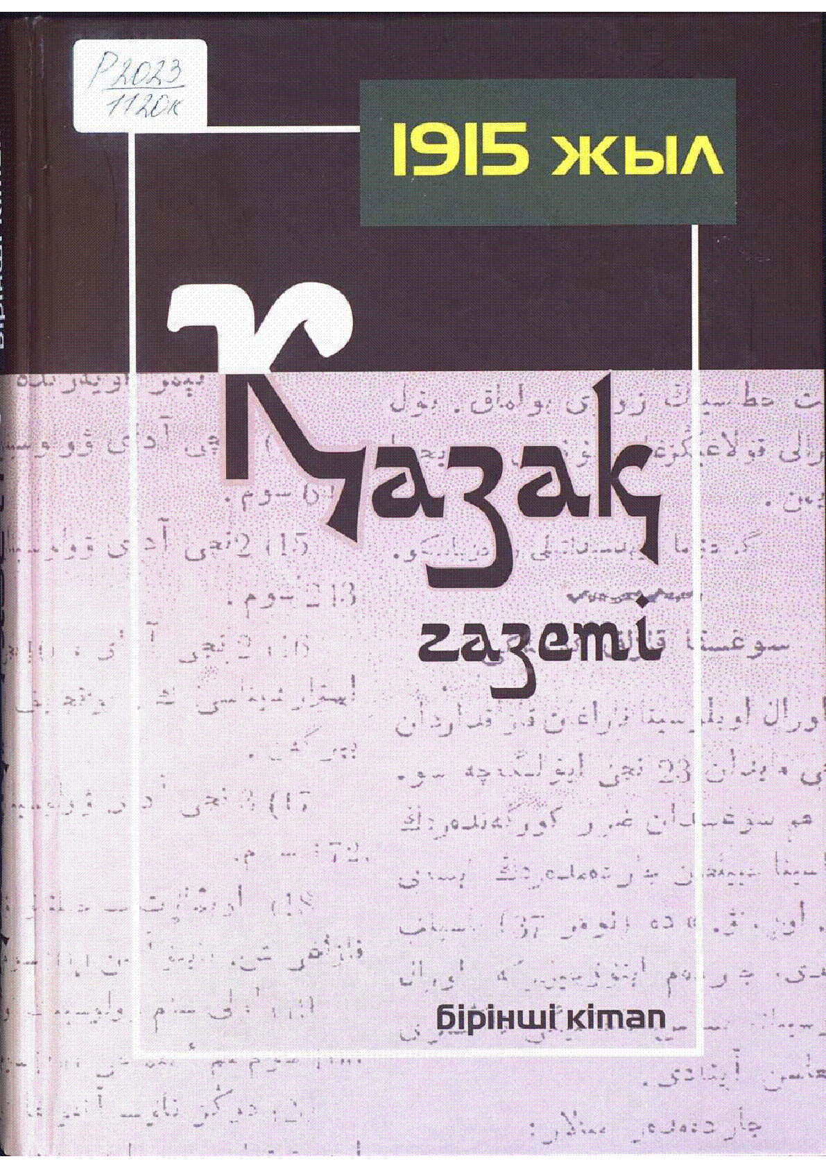 "Қазақ" газеті. 1915 жыл [Мәтін] ; ҚР Ғылым және жоғары білім министрлігі, Л. Н. Гумилев атын. Еуразия ұлттық ун-ті ; "Алаш" мәдениет және рухани даму ин-ты ; Репрессияға ұшыраған Қазақстан зиялыларының мұрасын зерттейтін "Арыс қоры" ; [жауапты ред. Х. А. Сұлтан ; жауапты шығ.: Ғ. Әнес, Т. Замзаева] .- Алматы : [б. ж.] , 2023. – "Шерлі шежіре" жобасы .– 3000+100 дана . – ISBN 978-601-7627-45-4 (мұқ.) - Қазақстан Республикасы Мәдениет және ақпарат министрлігі "Мәдениет және өнер саласындағы бәсекелестікті жоғарылату, қазақстандық мәдени мұраны сақтау, зерделеу мен насихаттау және мұрағат ісінің іске асырылу тиімділігін арттыру" бағдарламасы "Әдебиеттің әлеуметтік маңызды түрлерін сатып алу, басып шығару және тарату" кіші бағдарламасы бойынша жарық көрді . Есімдер көрс.: 475-493 б. 1-кітап .– 492, [2] б., суретті . (мұқ.) : 3600 тг.