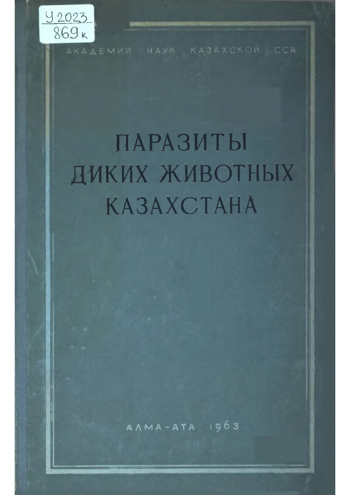 Паразиты диких животных Казахстана = Parasites of wild animals of Kazakhstan [Текст] / ; [ред. кол.: И. Г. Галузо [и др.]] ; Академия наук Казахской ССР ... – Алма-Ата : Издательство Академии наук Казахской ССР, 1963. - 252, [4] c., ил.;– (Труды Института зоологии. ; Т. 19 . – Библиогр. в конце ст. . – 1000 экз. (в пер.) : 0 тг.