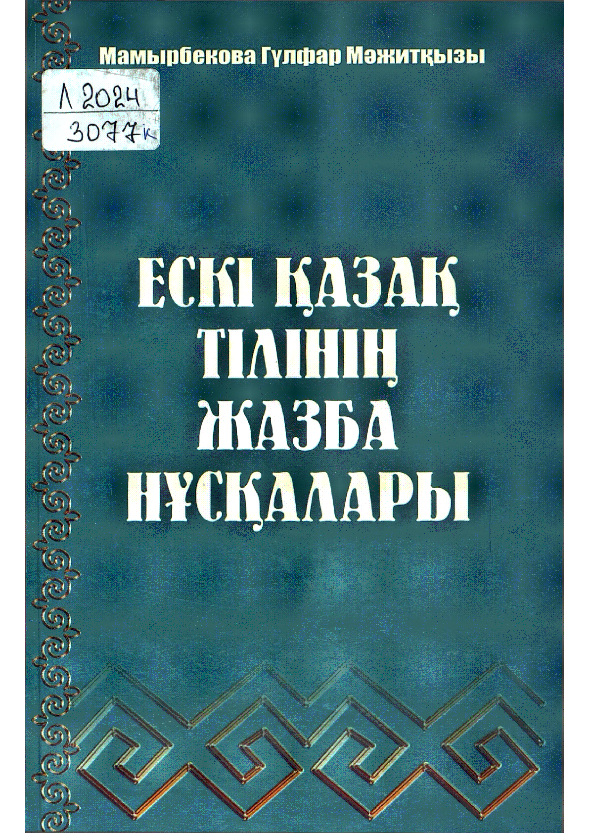 Ескі қазақ тілінің жазба нұсқалары [Мәтін] / Г. М. Мамырбекова ; [А. Байтұрсынұлы атындағы Тіл білімі институты ; жауапты редакторы М. Малбақов]... – Алматы : Шапағат-Нұр, 2012. - 360 б., кесте; - Факсимилдік көшірмемен берілген . . – 500 дана – ISBN 9965-582-38-6 (мұқ.) : 0 тг.