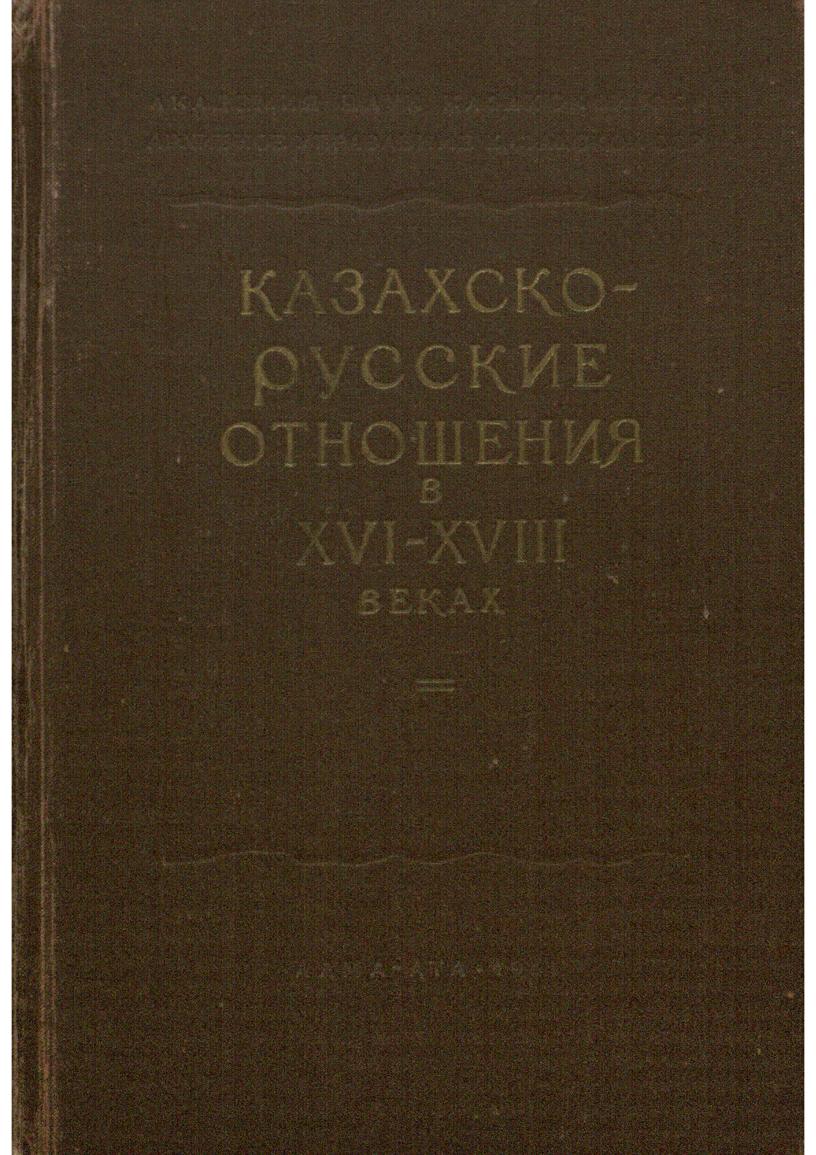 Казахско-русские отношения в XVI-XVIII веках [Текст] : (сборник документов и материалов) / ; [сост.: Ф. Н. Киреев [и др.] ; под ред.: В. Ф. Шахматова, Ф. Н. Киреева, Т. Ж. Шоинбаев] ; Акад. наук КазССР ; Центр. гос. архив КазССР... – Алма-Ата : Изд-во Акад. наук КазССР, 1961. - XVI, 743, [4] c., ил.; . – Указ.: с. 707-740 . – 1200 экз. (в пер.)